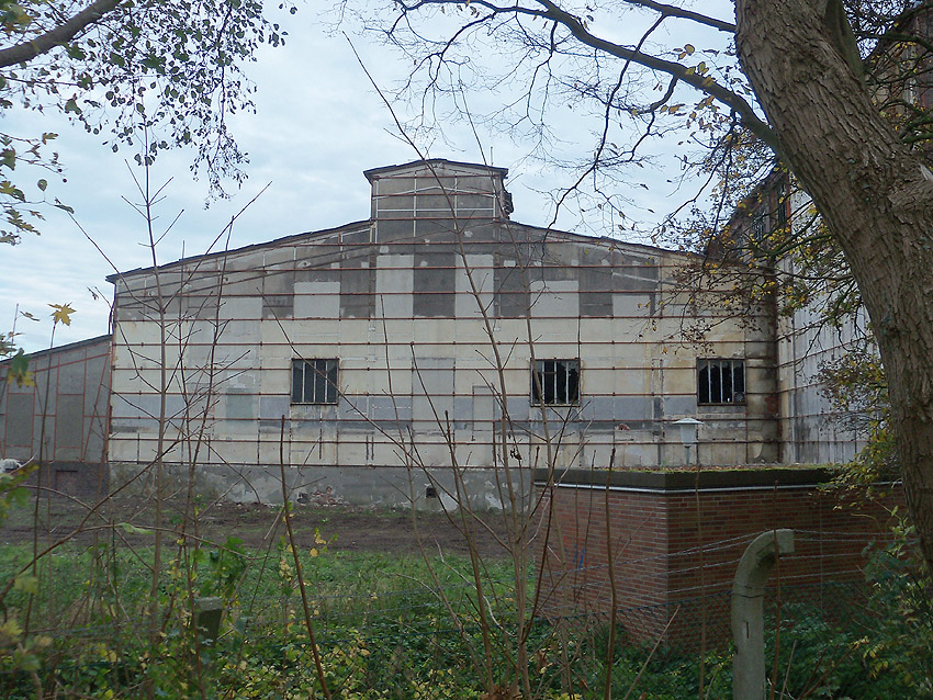 12.12.14: Am Verwaltungstrakt wurde heute ein nicht unerheblicher Teil an der Südseite abgebrochen. Damit verliert hier die Fassade der Südzentrale, genau wie im Nordbereich, ihre prägnante Struktur.