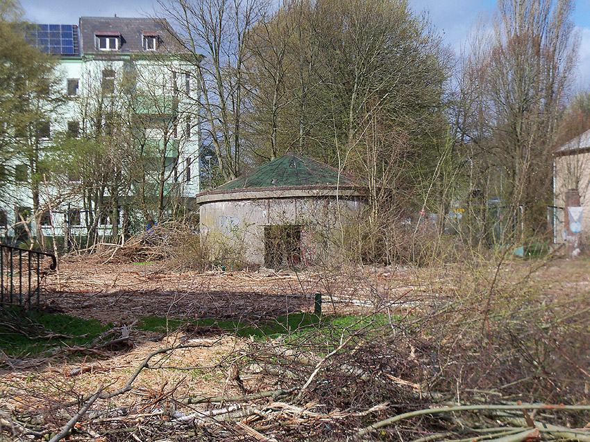 10.12.15: Der Bunker war baugleich zu denjenigen beispielsweise auf der Wiesbadenbrücke oder am Totenweg. Er besaß einen Splitterschutzvorbau im Bereich der später eingebauten "Lüftung". Dort war ursprünglich der Eingang.