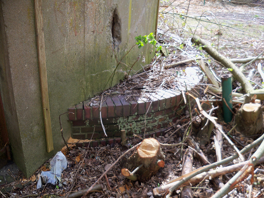 Um den Bunker herum läuft eine verzierende Mauer mit einem Pflanzbett, in welchem sich wohl Blumenbeete befanden...