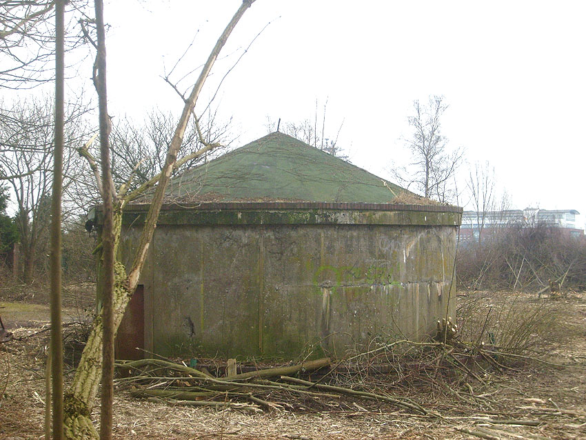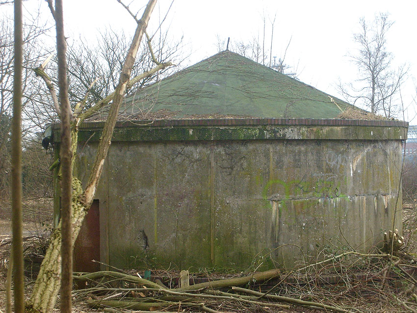 Aufgrund seiner relativ aufwendigen Bauweise im Simsbereich und Verzierungen am Sockelbereich scheint dieser Rundbunker schon sehr früh im Krieg errichtet worden zu sein. Oder aber die Verzierungen wurden nach dem Krieg angebracht. Er muss der Bedienungsbelegschaft des Südkraftwerkes / Südzentrale als Schutzraum gedient haben.