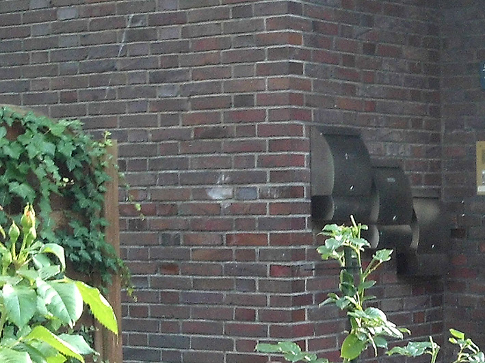Vor vielen LS-Kellerfenstern im Stadtgebiet wurden Betonblöcke als Detonationsdruckschutz abgelagert. Der Zwischenraum zwischen Block und Außenwand wurde mit Putz abgedichtet.
